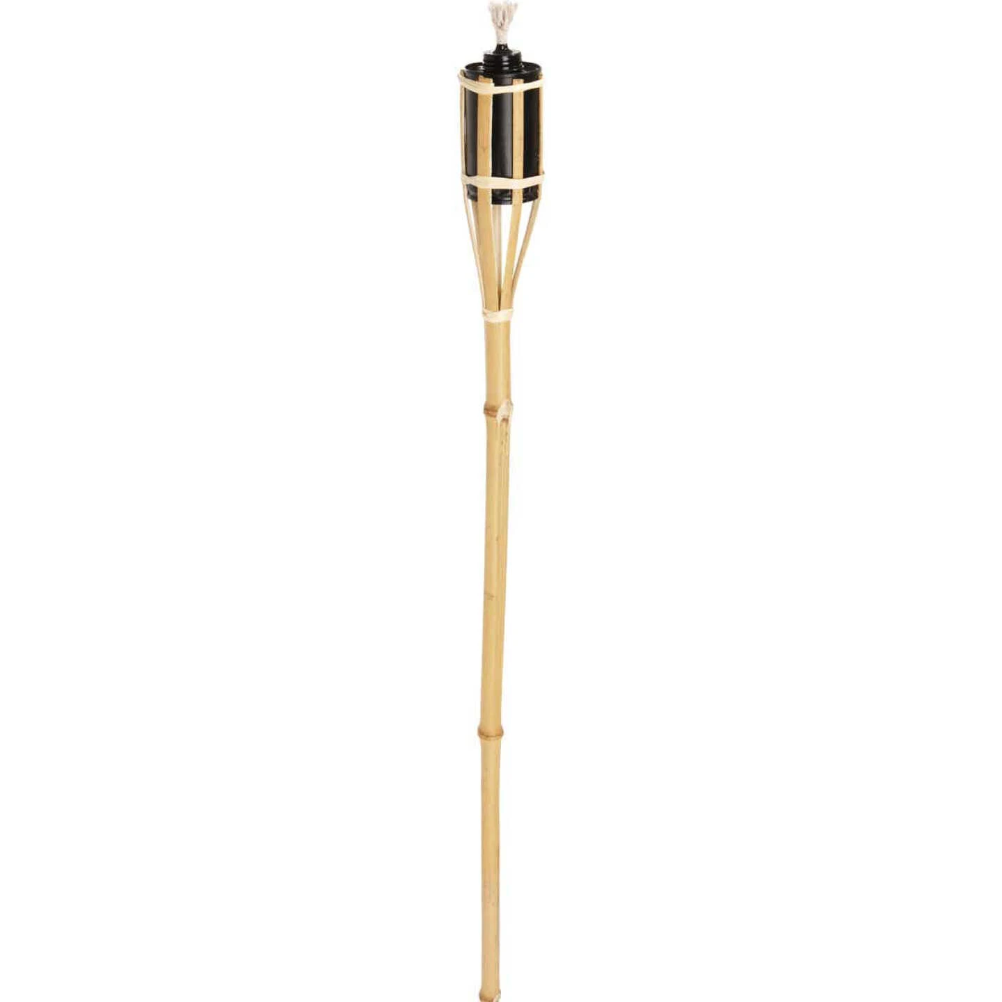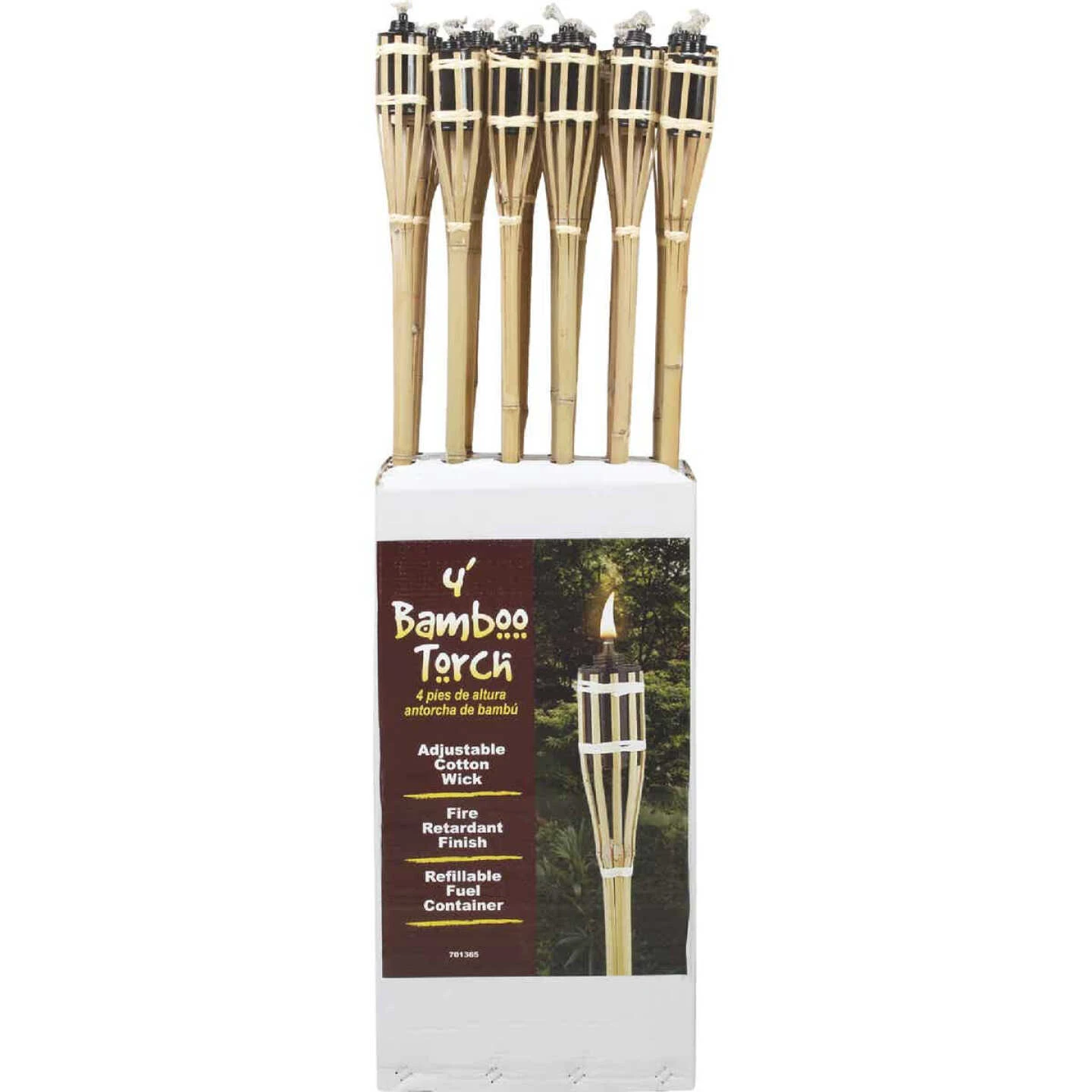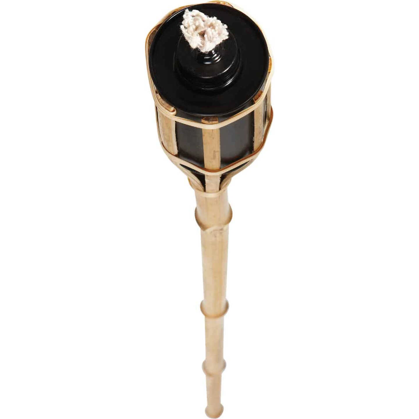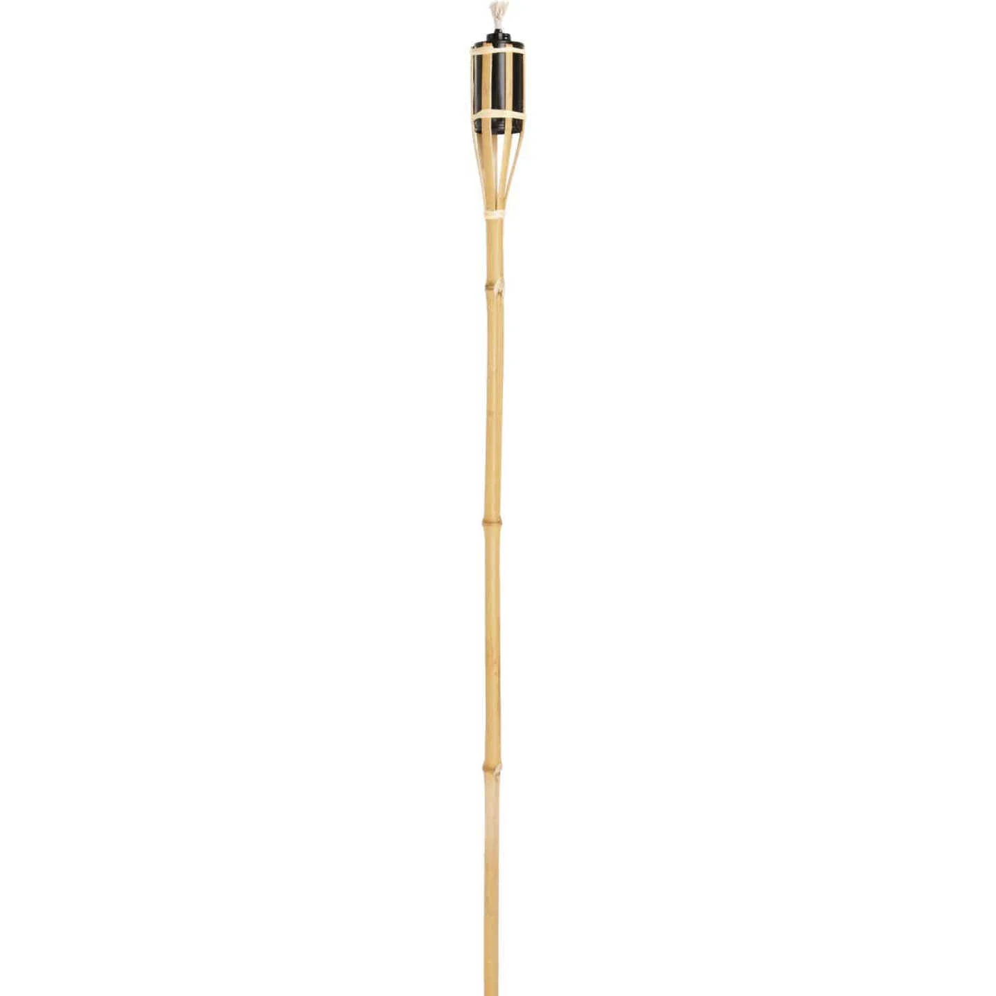 Bamboo patio torch ideal for lighting decks, patios, and backyards. Also help control mosquitoes and other bugs when citronella fuel is used. Features an angled tip for easy ground installation. Metal fuel container is refillable. Torch is 48 inches tall.