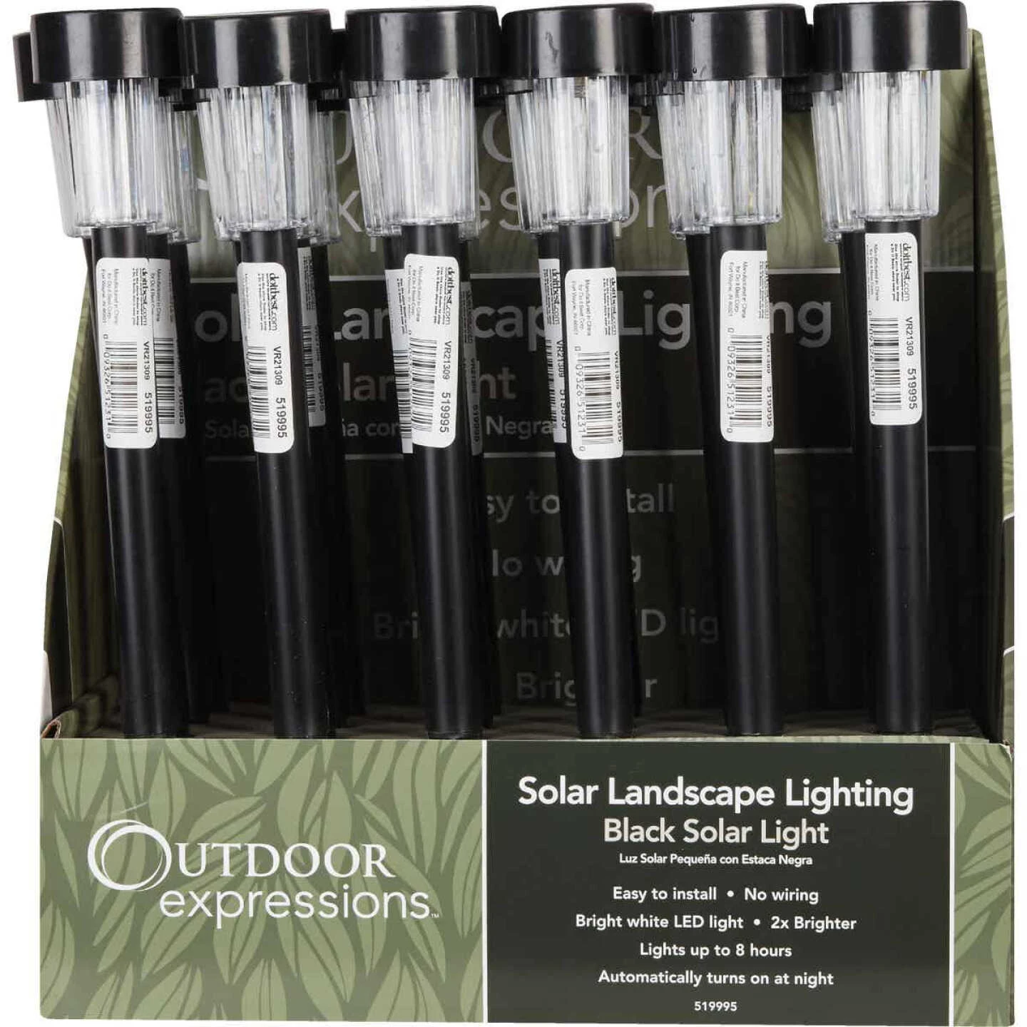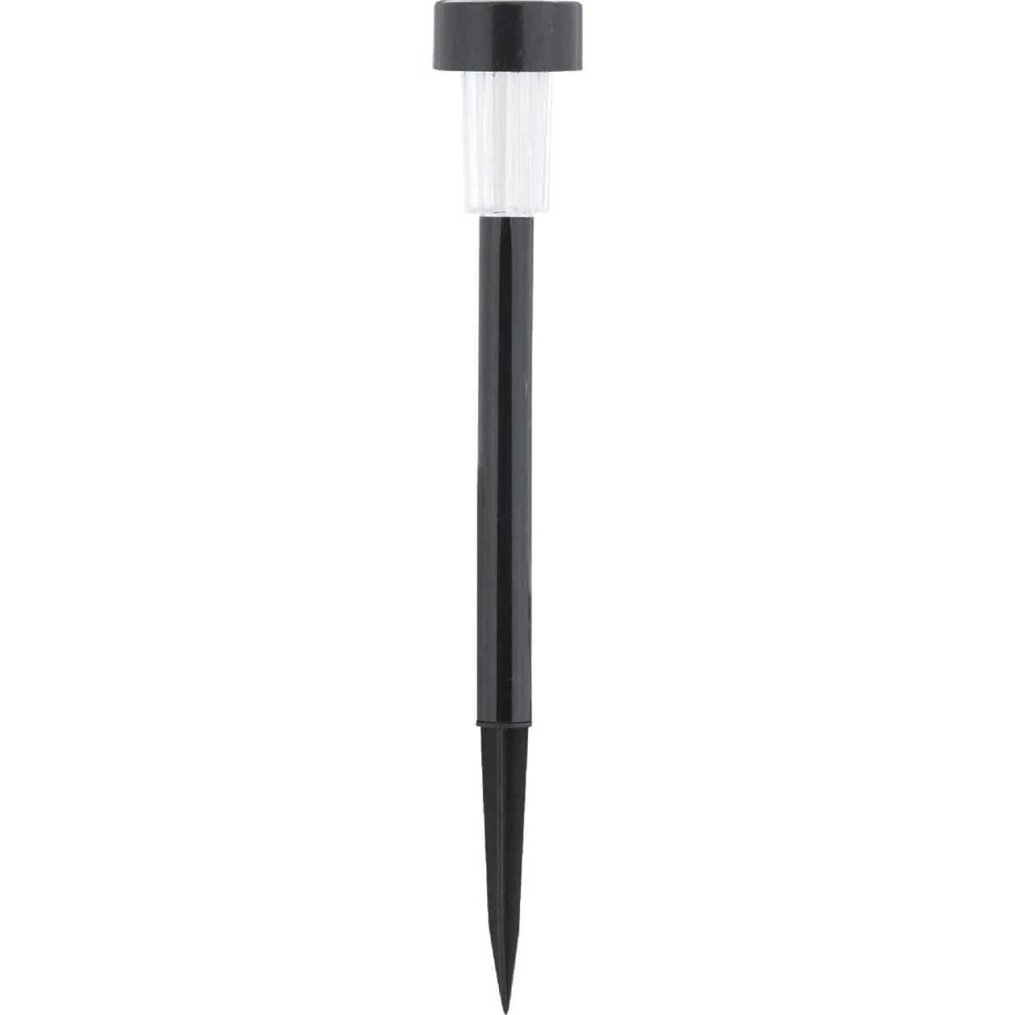 Solar powered mini stake light recharges by sunlight and automatically turns On at night. Features bright white LED (light emitting diode) technology that illuminates for up to 10 hours with fully charged batteries. Durable metal stake with spike inserts easily into the ground for quick installation. Uses (1) AAA 1.2V NiCd rechargeable battery, included.